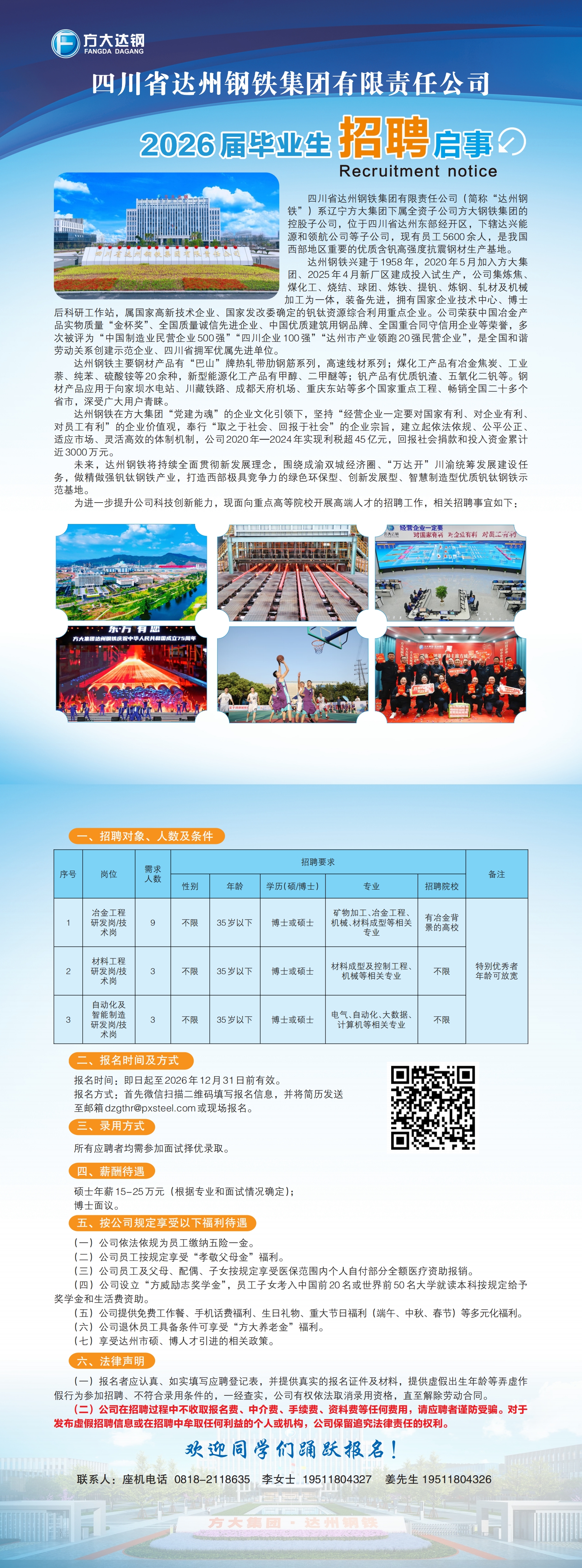 四川省达州钢铁集团有限责任公司2026届毕业生招聘启事