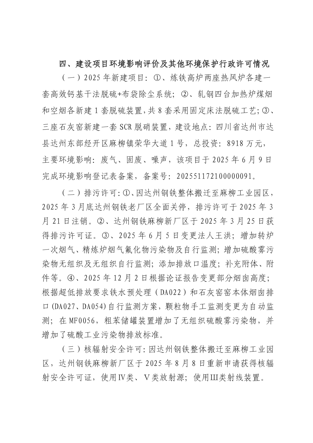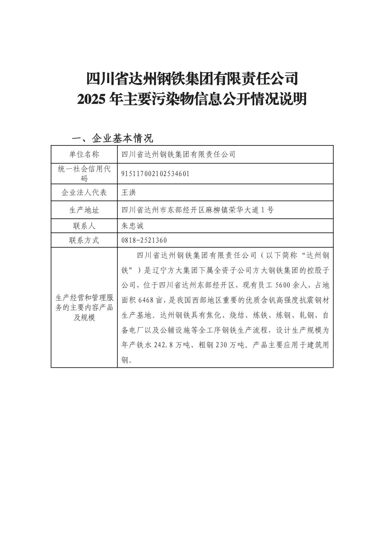 四川省达州钢铁集团有限责任公司2025年主要污染物信息公开情况说明